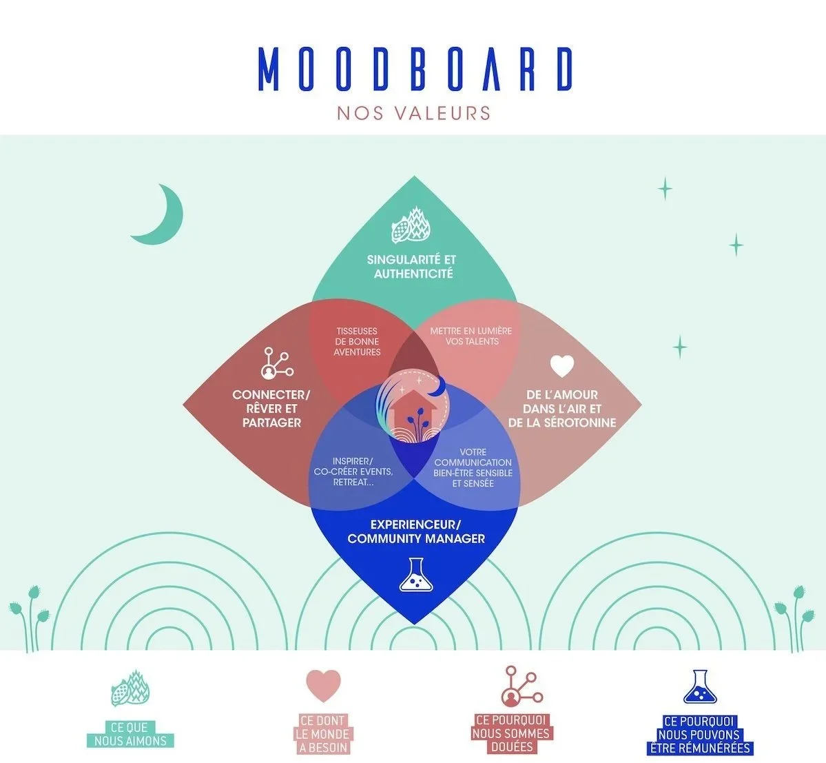 L’étoile IKIGAI serait la valeur de « l’instant partagé » / co-créateur d’émotions/ la fabrique à doux souvenirs/ l’humain comme vecteur de motivation !